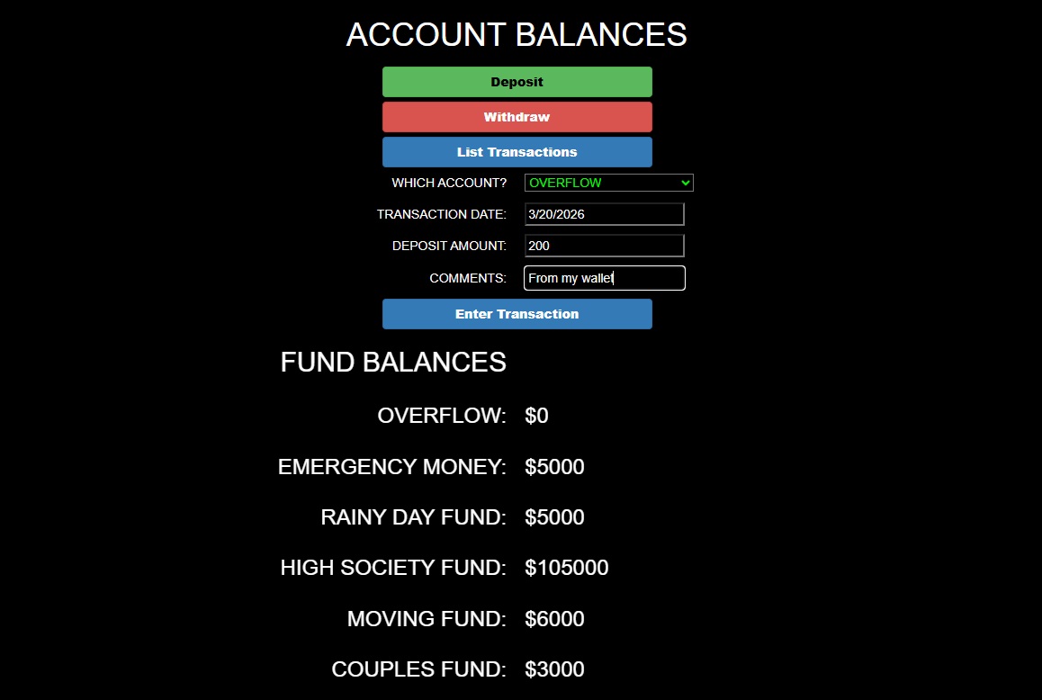 Entering a transaction (in this case, a deposit to one of the funds).